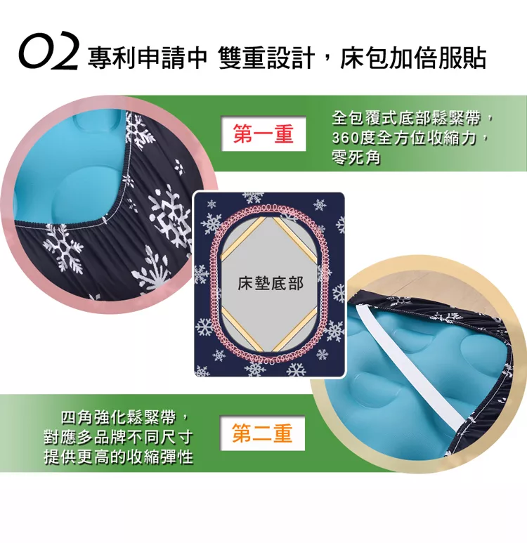2.第二重:四角強化鬆緊帶,對應多品牌不同尺寸提供更高的收縮彈性
