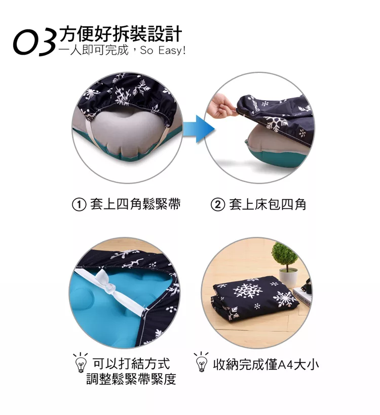 ◆方便性:床包輕薄透氣,方便拆裝好收納。